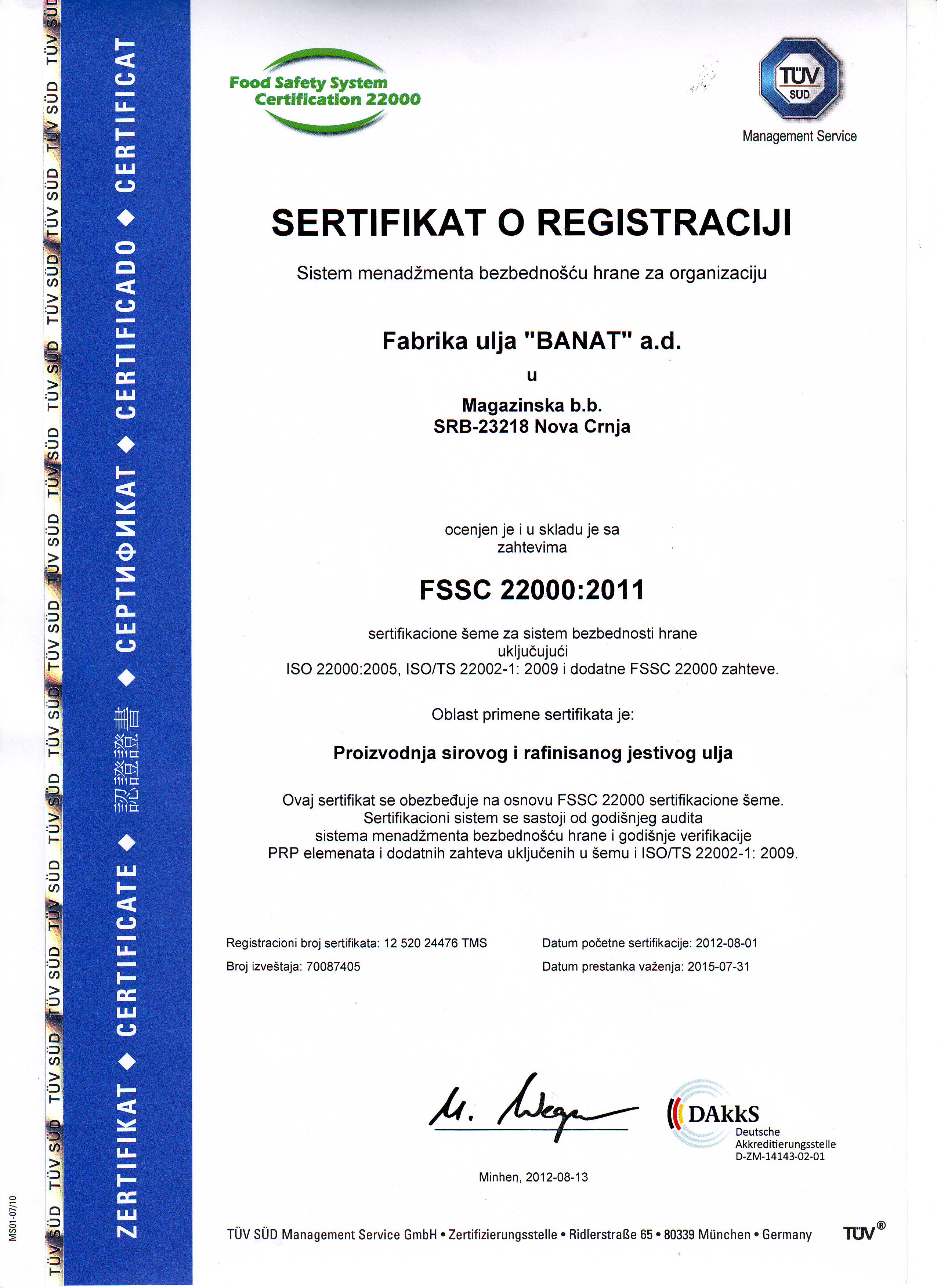 an image Work, business success and further development of Oil Factory Banat AD is based on continuous improvement of product quality and safety process.
